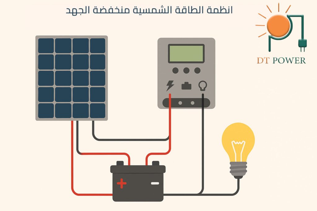 أنظمة الجهد المنخفض في الطاقة الشمسية تُستخدم بشكل شائع في التطبيقات الصغيرة والمنزلية، وتعتمد على جهد مستمر DC منخفض مثل 12 فولت، 24 فولت، أو 48 فولت.
